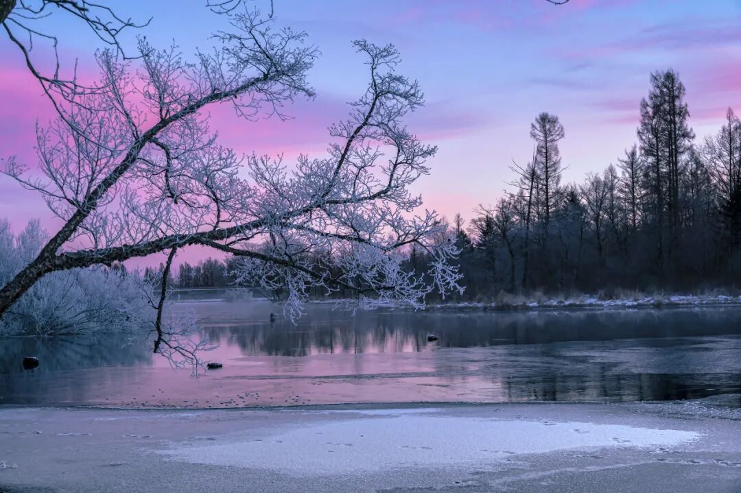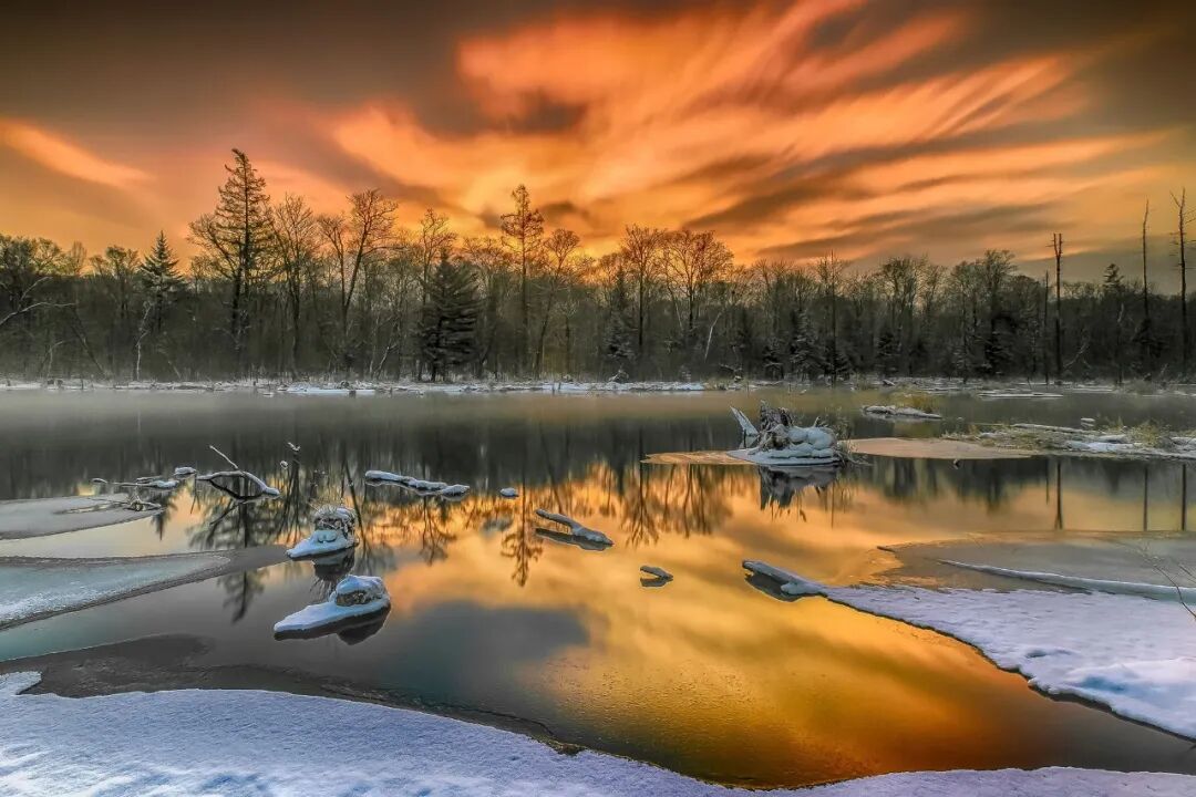 魔界是冬季漂流的好地方。一定要早起,趁着天光微亮,万籁俱寂,躺在皮艇上听潺潺流水声,看霞光穿过树梢,透过晨雾,洒落在斑驳的雪地上,奇幻妖娆。
