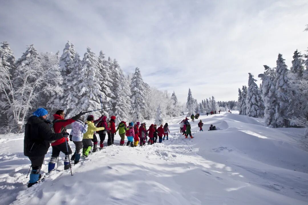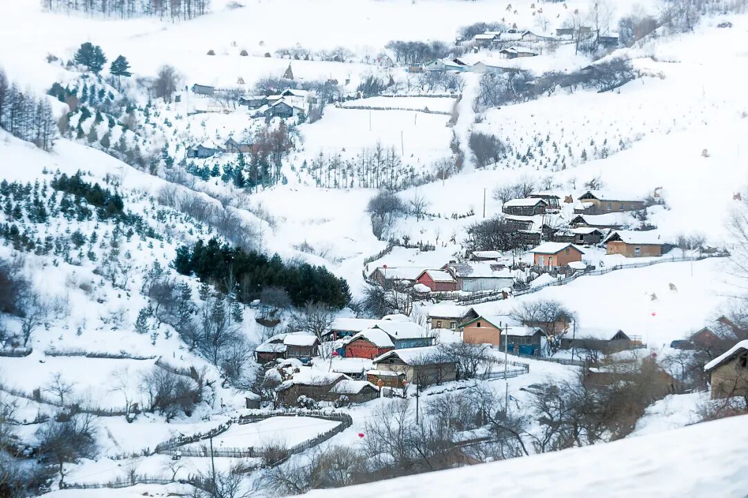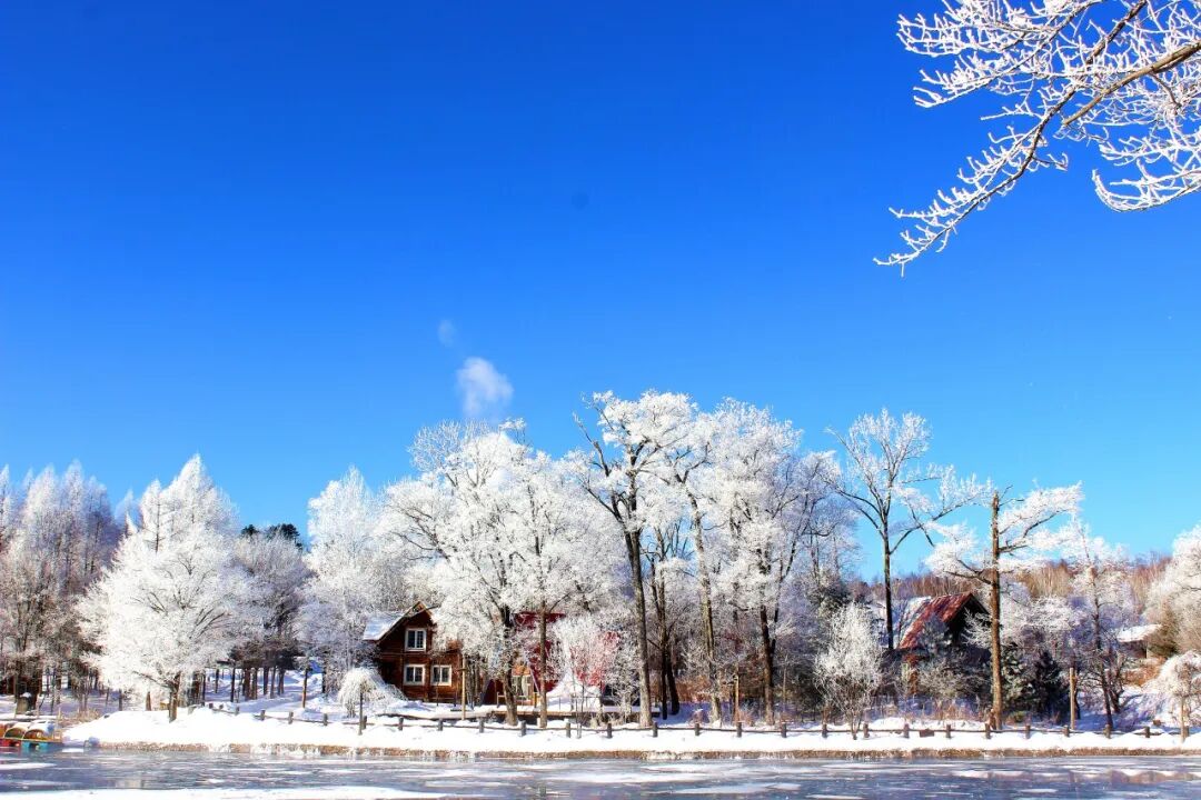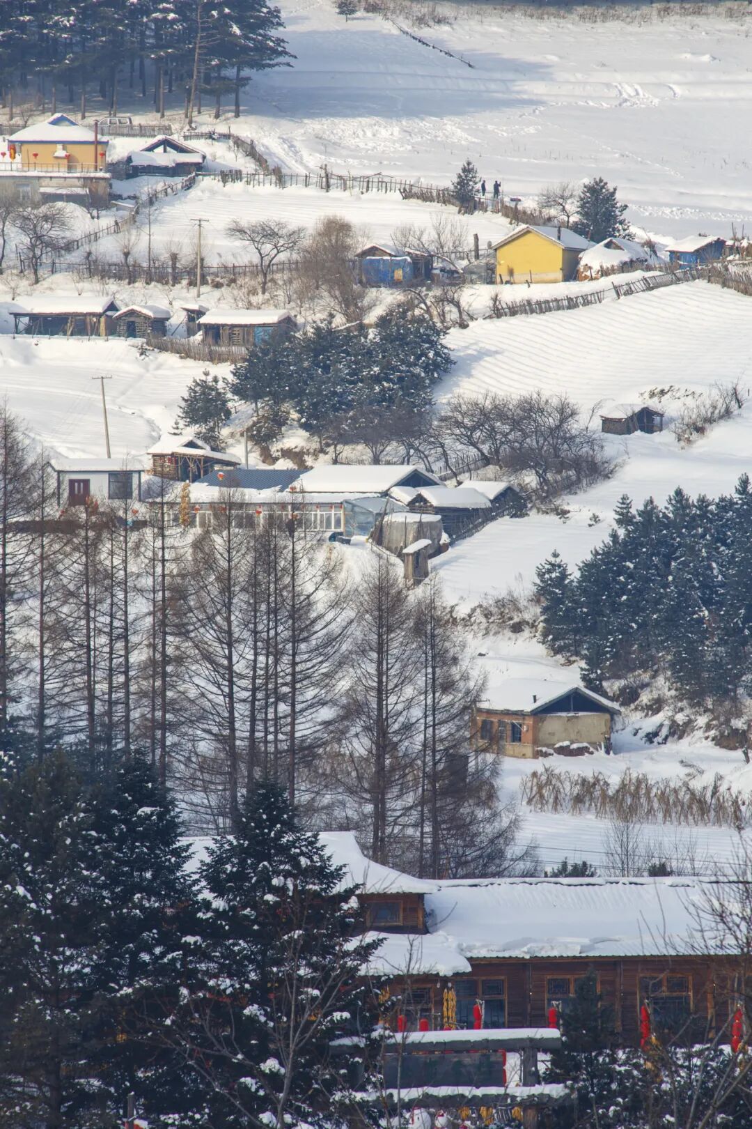 老白山雪村是保留着原汁原味、自然质朴的东北民俗小村落,厚厚的积雪平铺地面,树木枝头处处凝霜挂雪,宛如天然的冰雪童话世界。