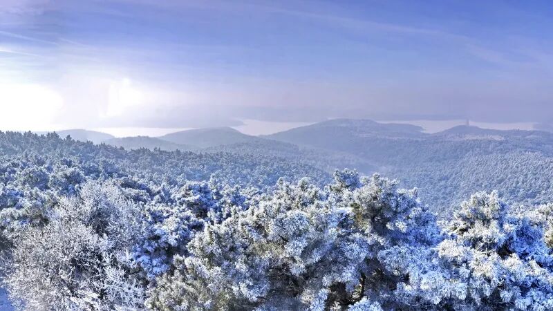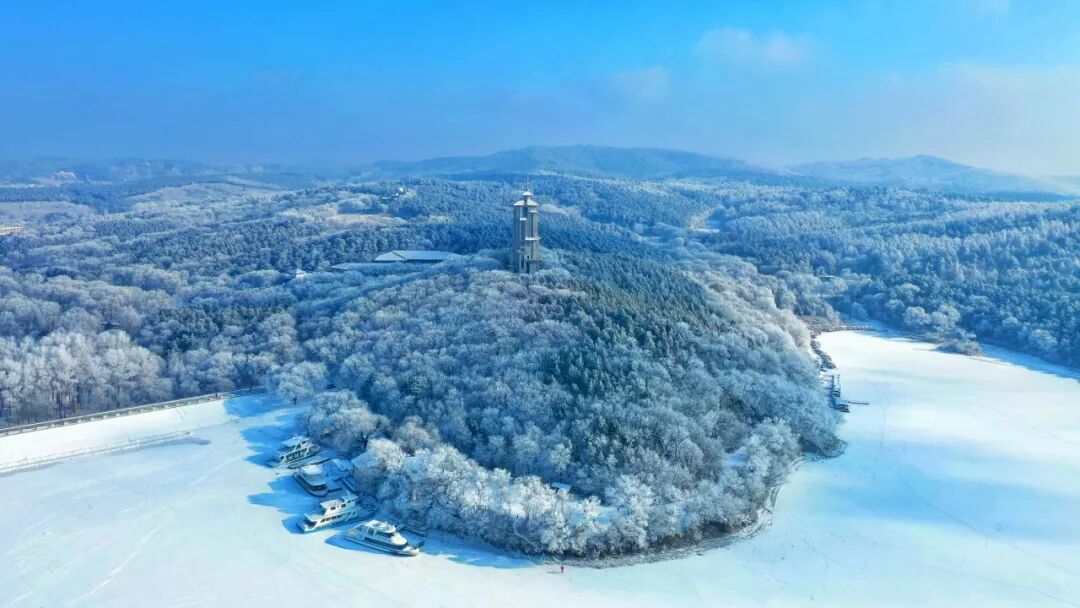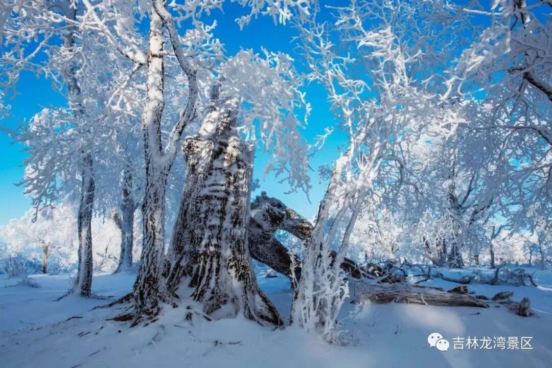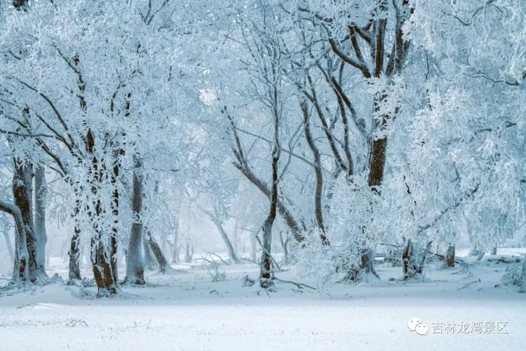 雪落在繁茂枝干间,形成了造型各异的天然雪雕与壮美的雾凇,让人仿佛置身于洁白的童话世界。