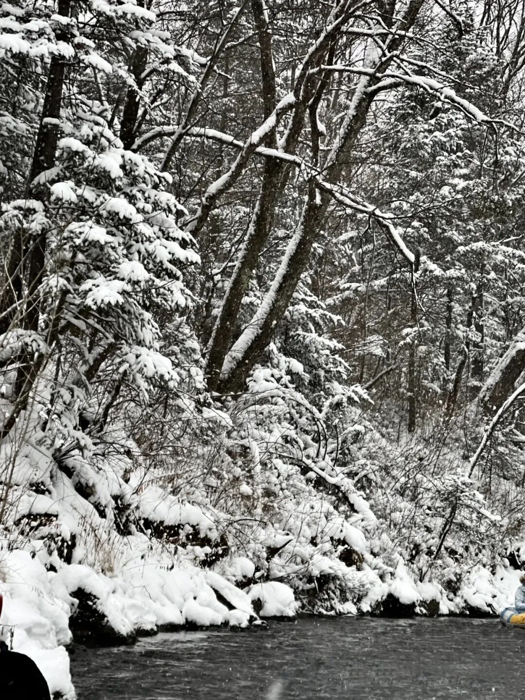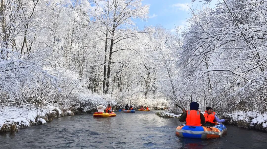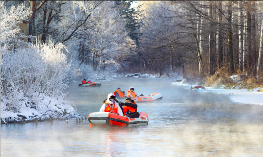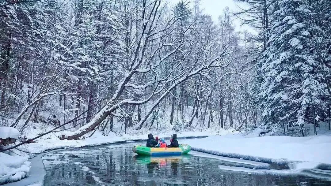 在漂流的同时,你会看到雪景美不胜收,放眼望去,一片白茫茫。在这雪的世界里,漂流成为了一种独特的交通方式。沿途欣赏雪花飘落的美丽景色,感受雪中漂流的独特魅力,仿佛置身于一幅流动的画卷。