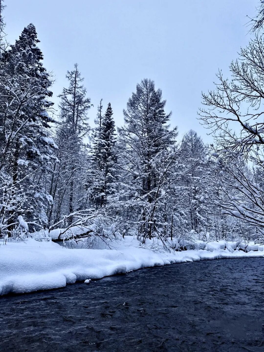 这里的河水,在零下的温度中依然潺潺流动。流动的河水加快了水分蒸发,使得水面上雾气蒸腾,蒸发的雾气在树上形成的雾凇如仙境般,在两岸被一层薄雪覆盖。